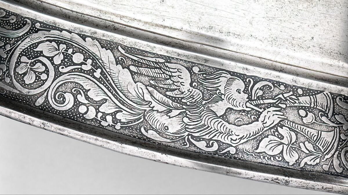 The first bites of our aquatints seemed promising. It’s a peculiar term, that might leasd the uninitiated to summon up visions of vipers, vampires and celluloid sharks. In printmaker lingo, a bite is how exposure to acid forms ink-receptacles below the surface of a plate used in intaglio printing. The Italian word intaglio covers a range of subtractive processes used to carve wood, stone or metal. It was also used to describe images created by cutting designs into metal plates—first in the decoration of weapons and armor, and later in the production of prints on paper. Medieval armorers discovered that they could accentuate the contrast between the incisions and the surrounding metal by first applying a patina, and then removing it from surfaces that were brightly polished. This left a residue of the patina deep in the cuts, creating an effect that resembles an ink drawing. Printers soon discovered that by rubbing ink into incised designs made on a flat plate, and then subjecting it to sufficient prerssure, they could transfer its mirror-image onto paper. Copperplate engraving soon replaced woodblock prints, which were far more laborious to produce. Metal plates also allowed engravers to produce more detailed imagery.