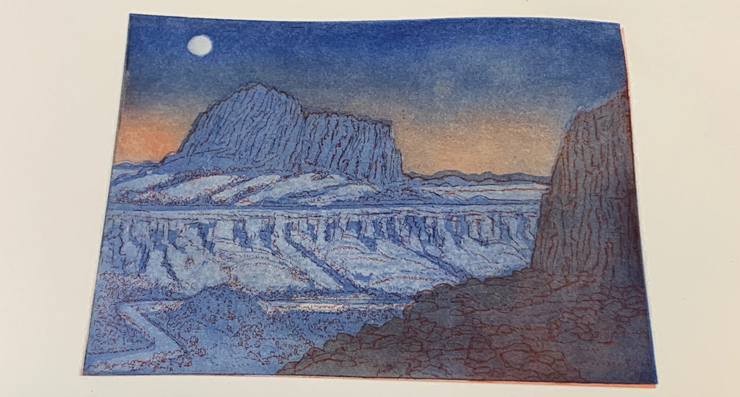 The first state of Desert Nocturne, getting a look at the linear bones of the image